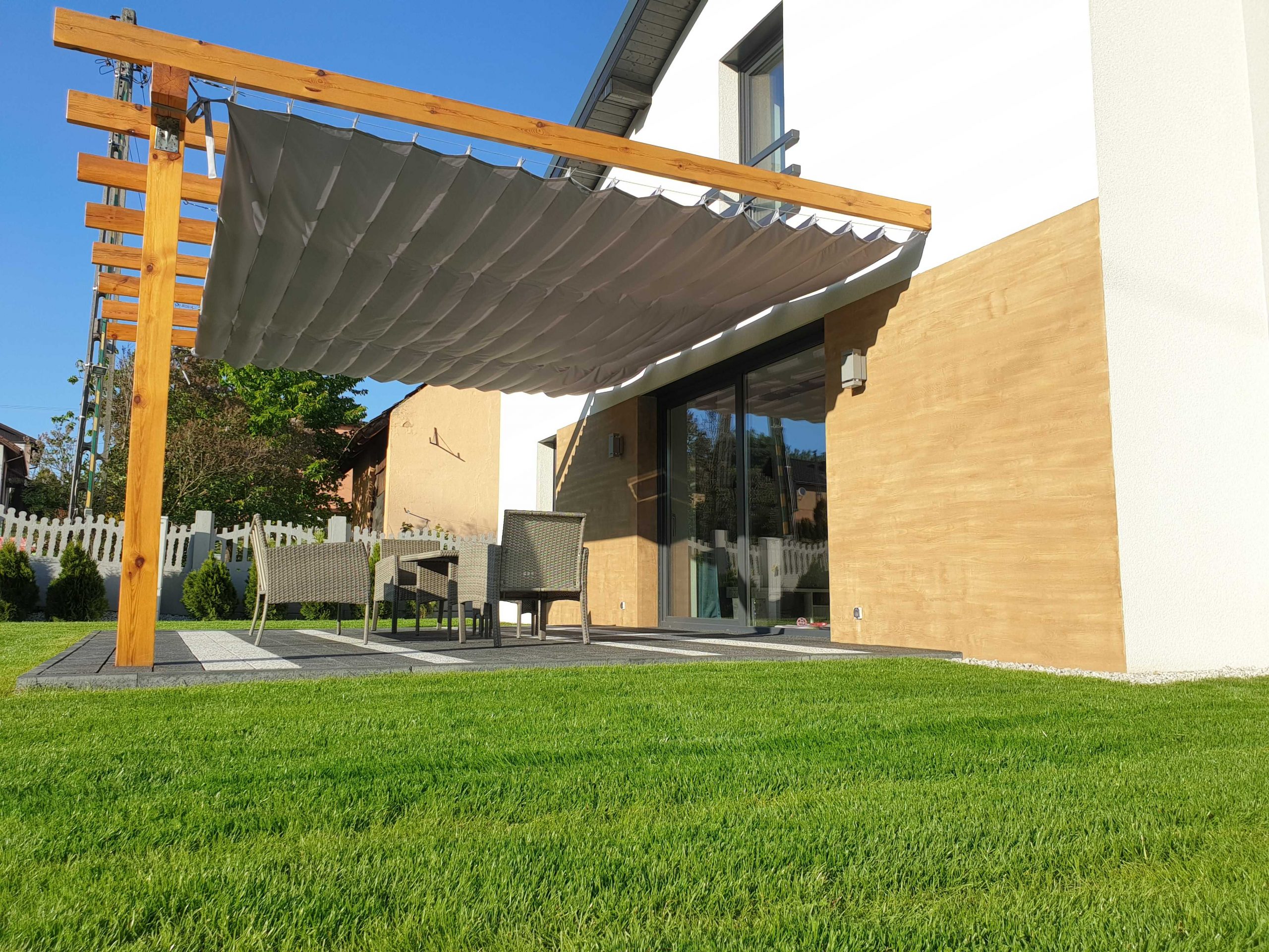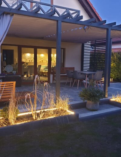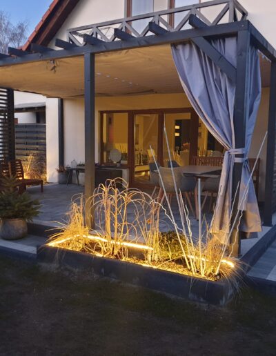 - Możliwe jest podzielenie jednej rolety na kilka części, co umożliwia pełne zarządzanie natężeniem światła na tarasie,