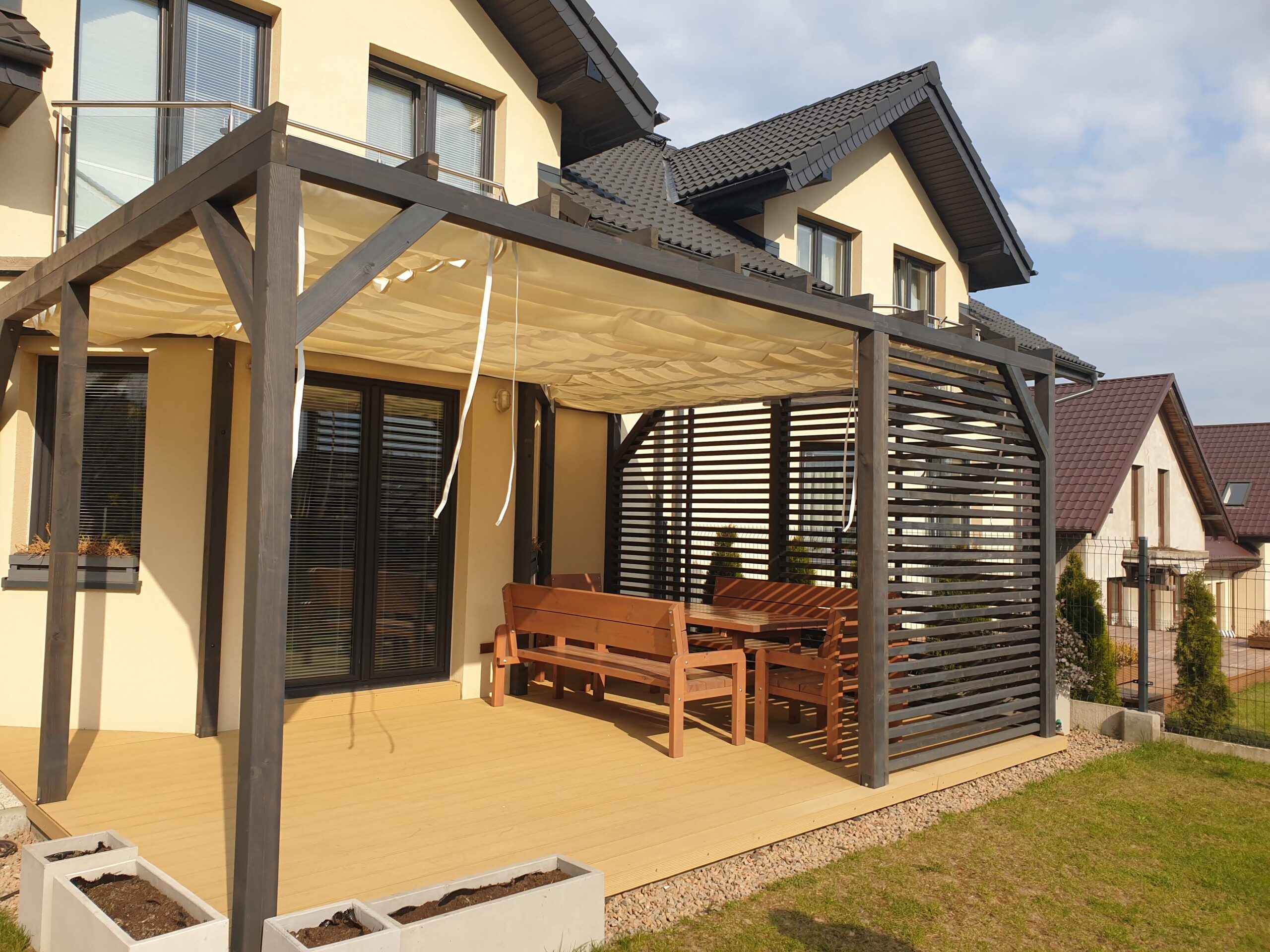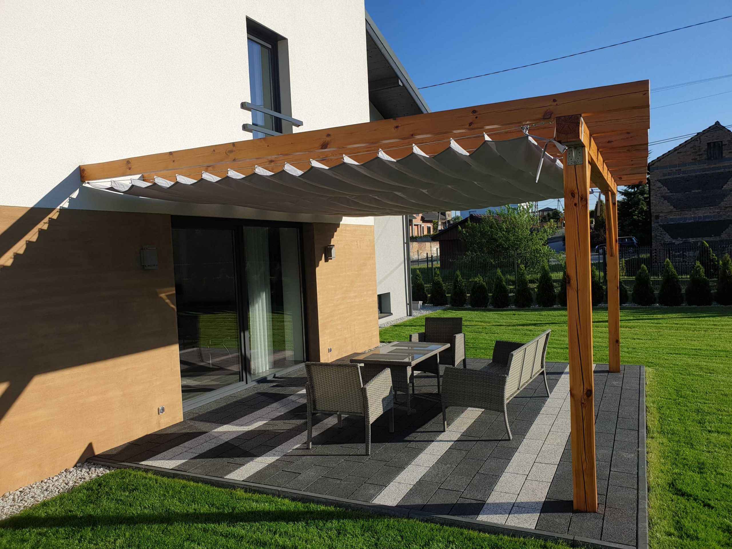 Oferujemy przesuwane rolety tarasowe. Chroniące od Słońca i deszczu.