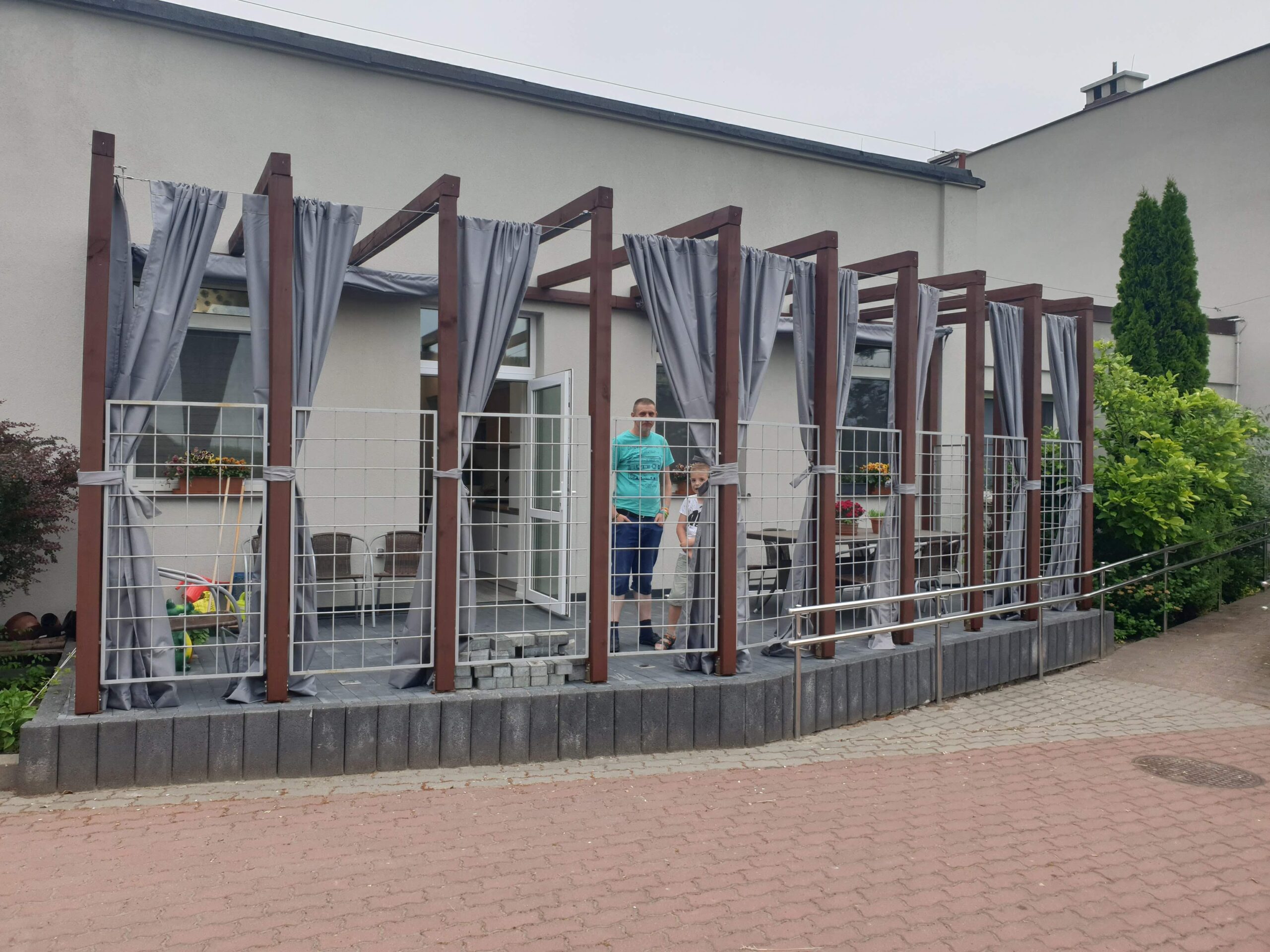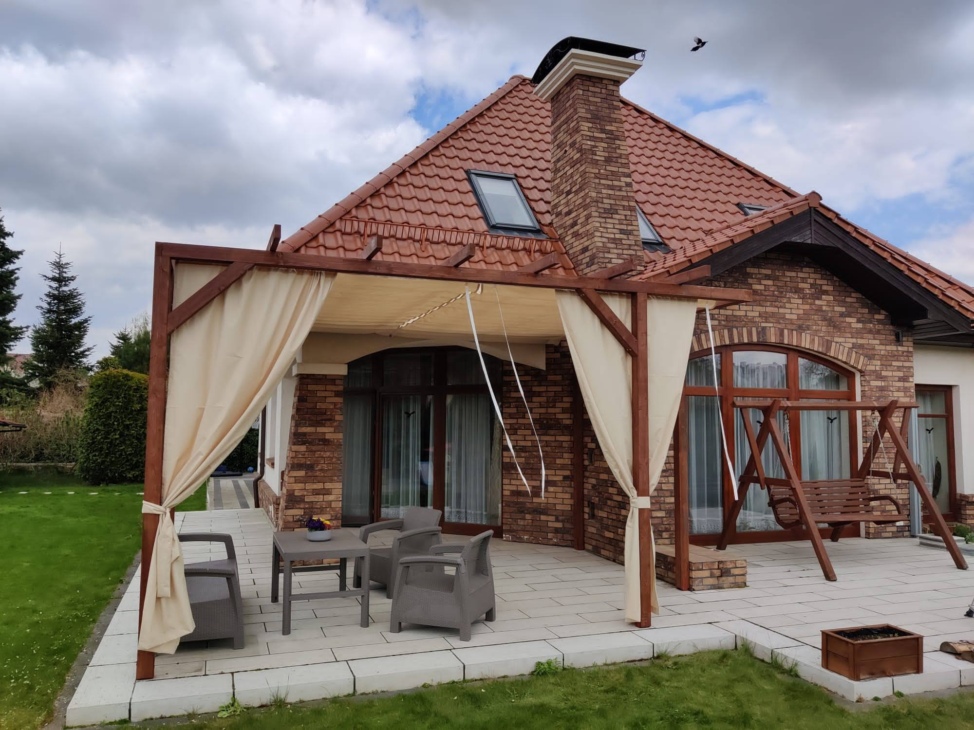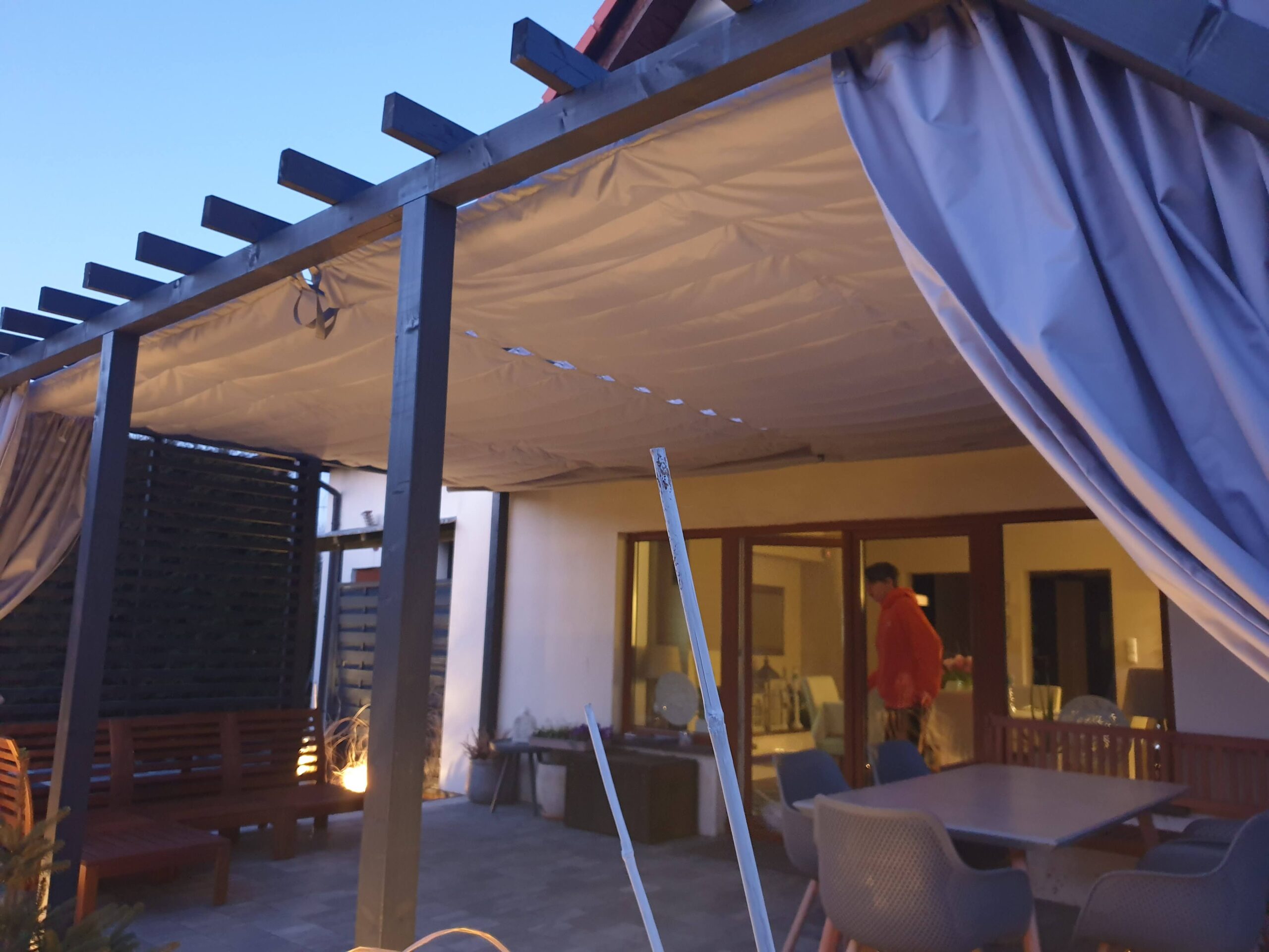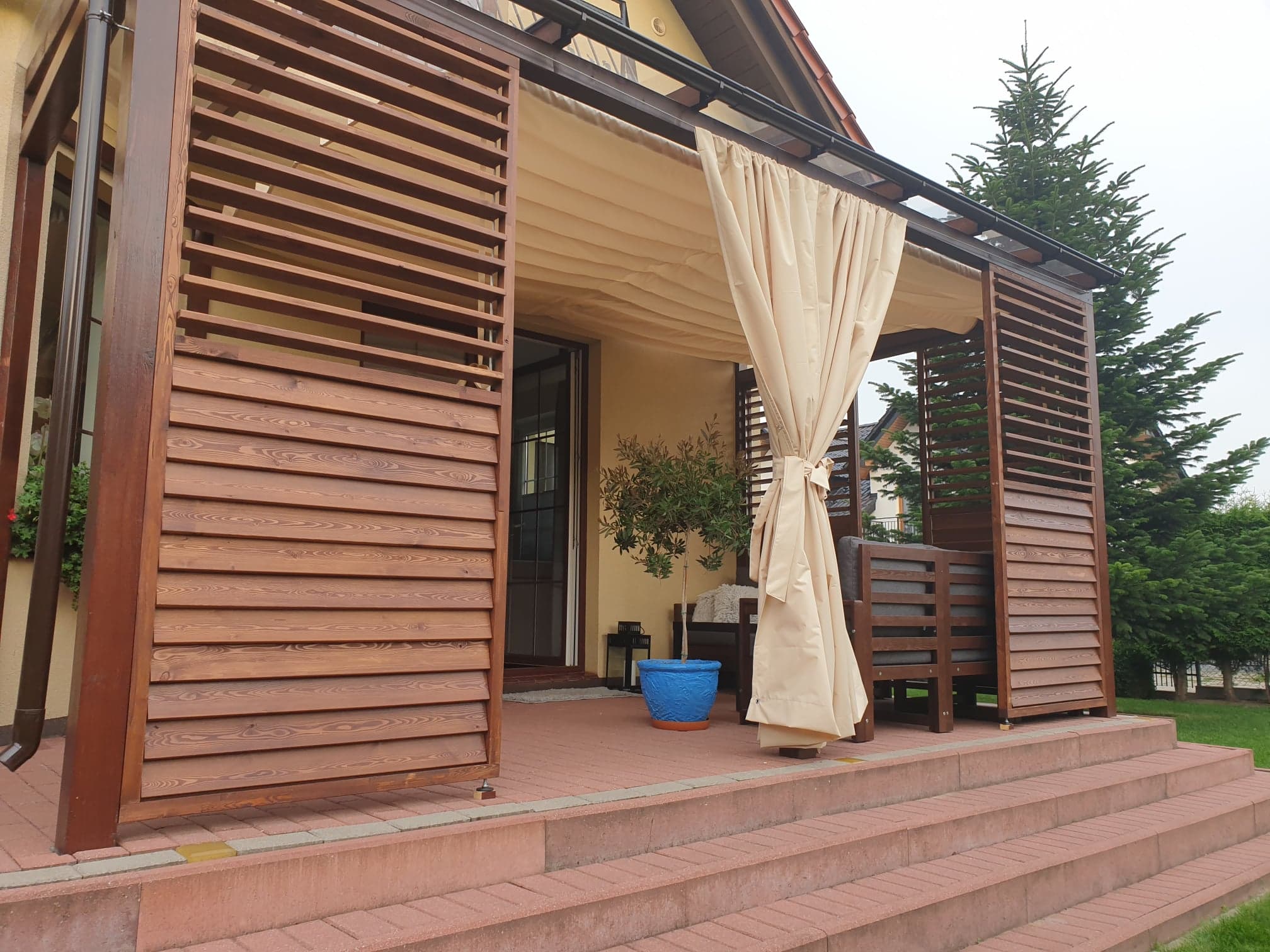 - Zasłony (dodatkowo płatne) dostępne w komplecie zapewniają również ochronę przed wiatrem,