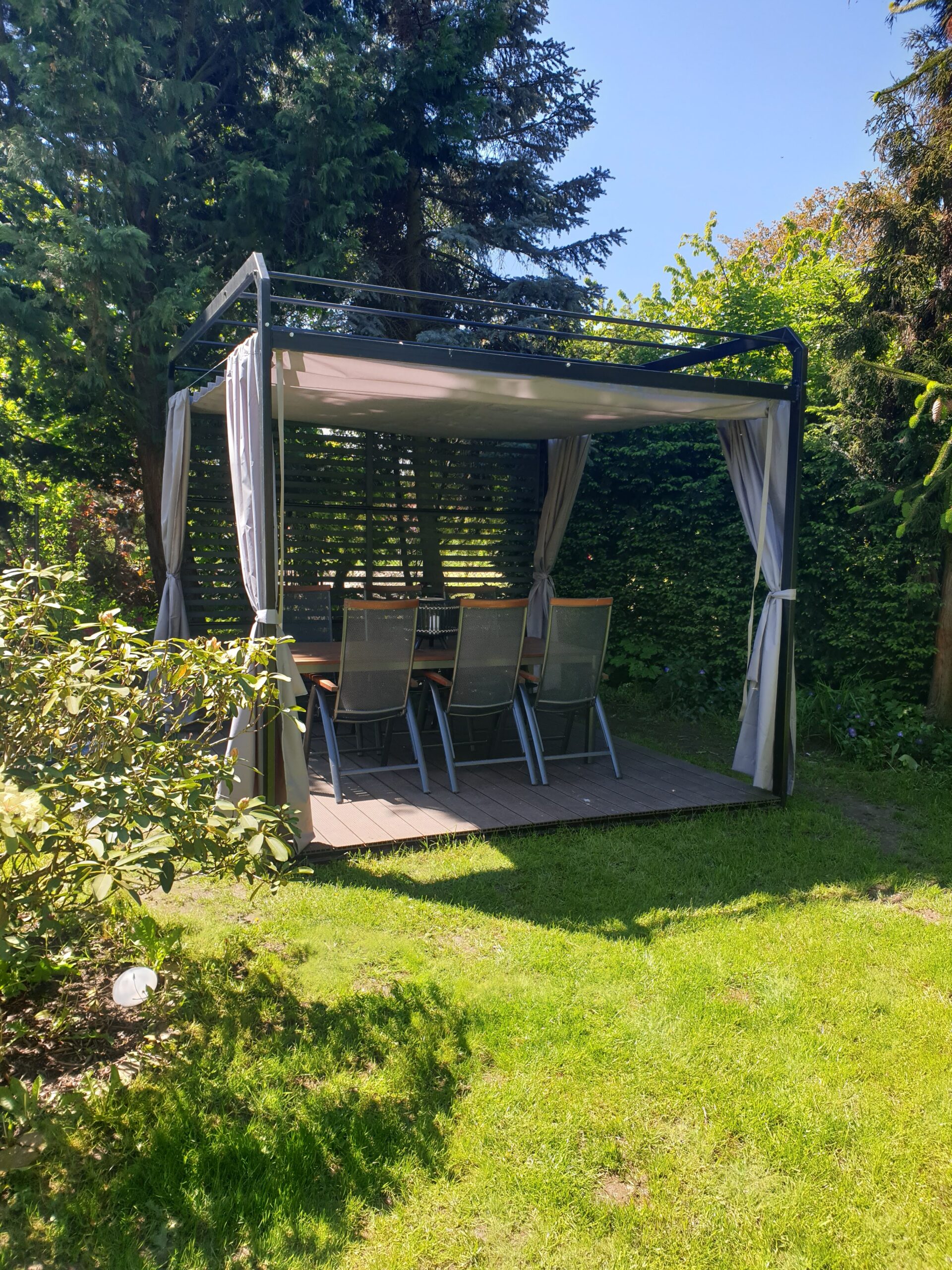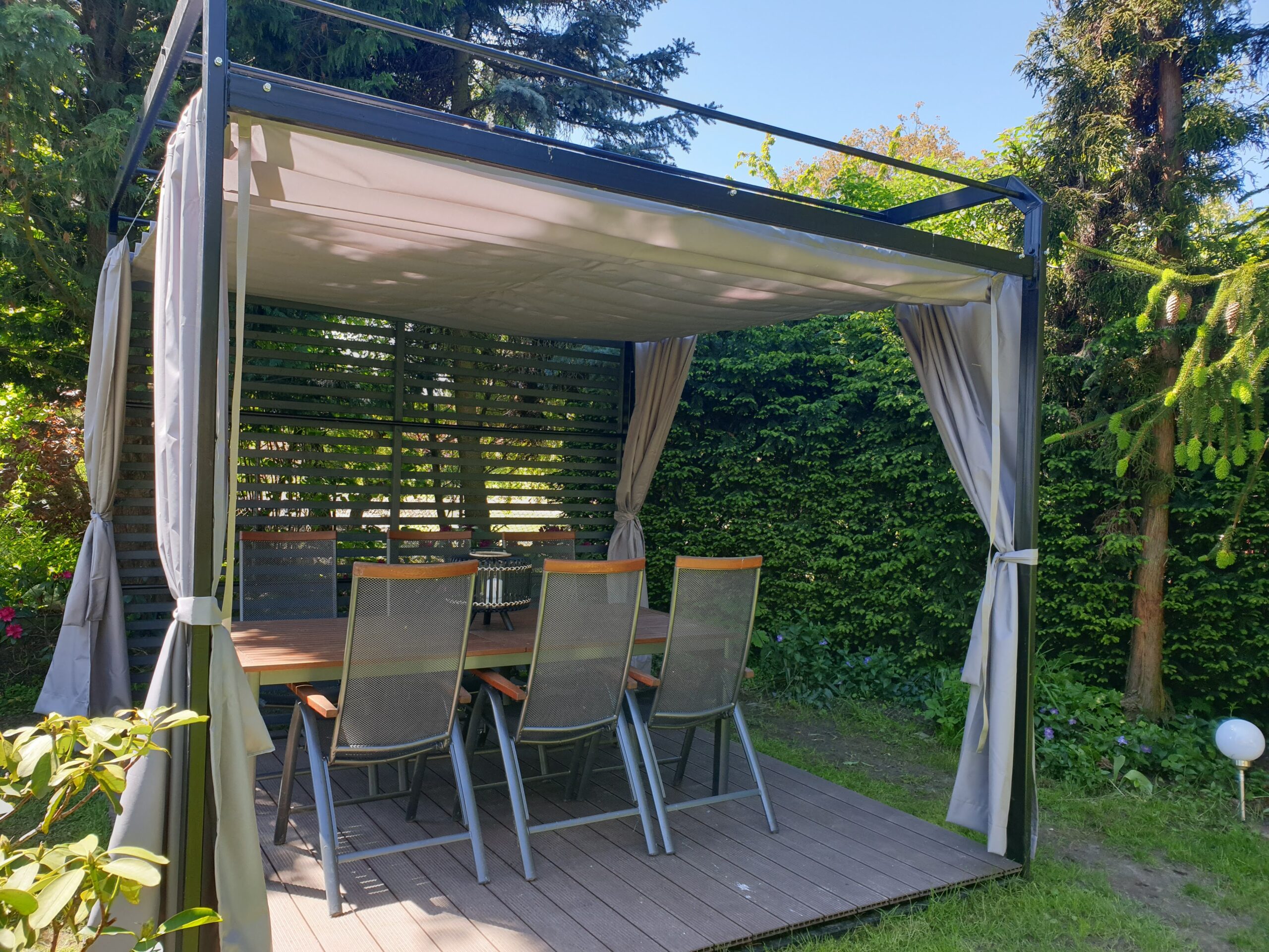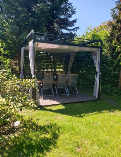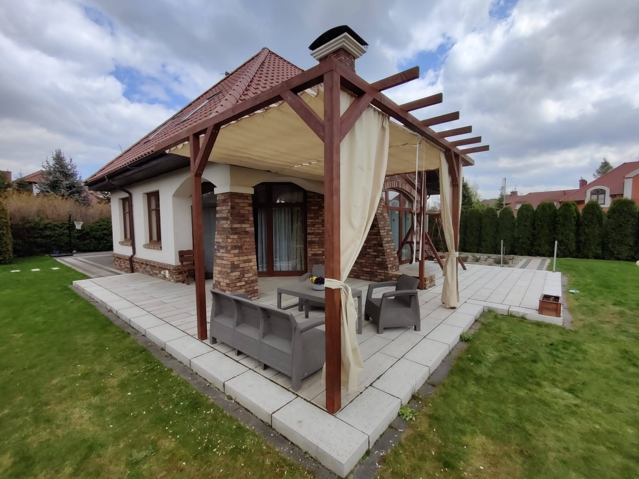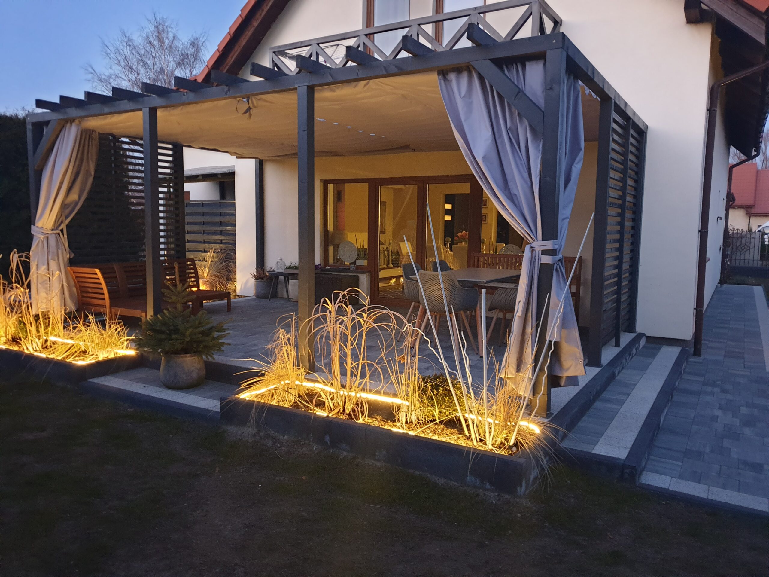 - Zasłony (dodatkowo płatne) dostępne w komplecie zapewniają również ochronę przed wiatrem,