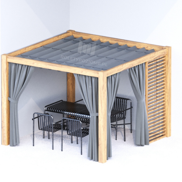 Szczegółowe wymiary zasłony są dostosowane do wymagań klienta, zarówno pod względem szerokości, jak i długości.